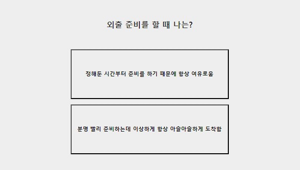 - 분명 빨리 준비하는데 이상하게 항상 아슬아슬하게 도착함 or 정해둔 시간부터 준비를 하기 때문에 항상 여유로움