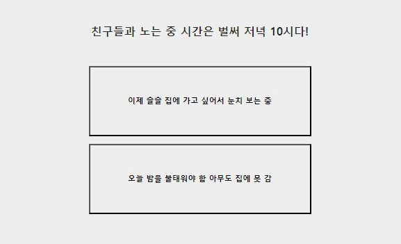 - 이제 슬슬 집에 가고 싶어서 눈치 보는 중 or 오늘 밤을 태워야 함 아무도 집에 못 감