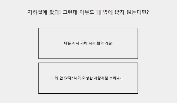 - 다들 서서 가네 자리 많아 개꿀 or 왜 안 앉지? 내가 이상한 사람처럼 보이나?'