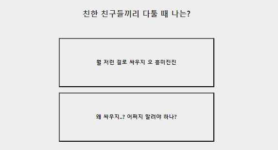 - 왜 싸우지..? 어쩌지 말려야 하나? or 저런 걸로 싸우지 오 흥미진진