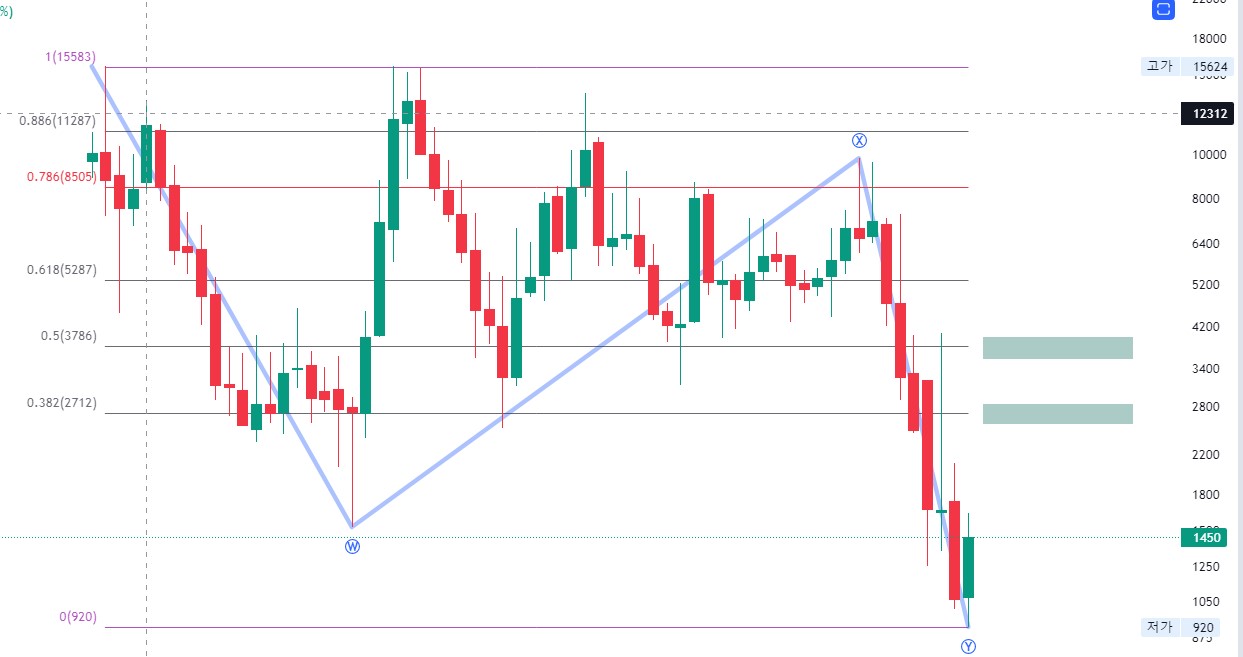 w파동은 335ABC 조정, X파동은 삼각수렴, Y파동은 535ABC 조정으로 구성 보여집니다.