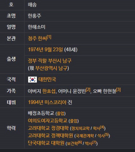 그녀의 집안은 부산 지역에서 유명한 세화학원(현 한얼교육재단, 한얼고등학교)의 집안입니다. 이 집안에서는 학생들의 저축 금액을 횡령하는 등의 논란이 있었습니다.