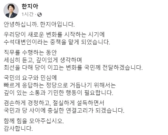한 대표는 대변인단에 곽규택 수석대변인을 유임하고, 한지아 의원을 추가로 선임했습니다.